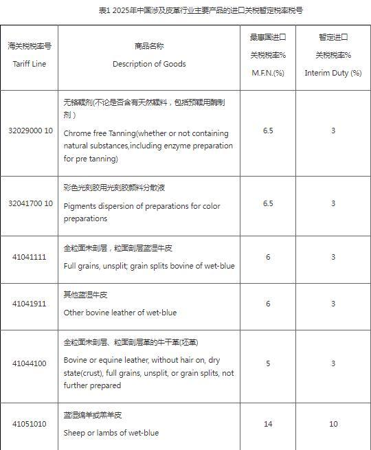 欲了解2025年中國(guó)皮革行業(yè)產(chǎn)品進(jìn)出口關(guān)稅的詳細(xì)稅率,請(qǐng)?jiān)L問(wèn)中國(guó)皮革網(wǎng):www.chinaleather.org(行業(yè)數(shù)據(jù)頻道)。
