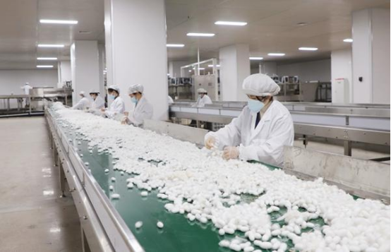 產(chǎn)線上雪白的蠶繭