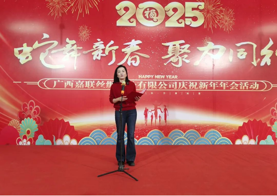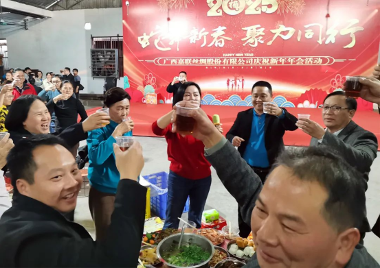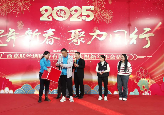 2025年1月19日,廣西嘉聯(lián)絲綢股份有限公司隆重舉行“蛇年新春 聚力同行”2025年年會(huì)團(tuán)建活動(dòng),全體員工共同參與了團(tuán)建游戲和年會(huì)聚餐等精彩活動(dòng)。