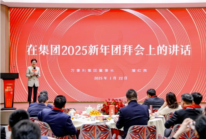1月22日,萬事利集團2025新春團拜會在萬事利科創(chuàng)中心溫暖啟幕。萬事利集團董事長屠紅燕、萬事利絲綢董事長李建華與集團各產(chǎn)業(yè)板塊負責人、職能部門負責人、員工代表齊聚一堂,大家用新年演說的形式分享了2024年的工作成績、工作感悟以及對2025年的工作計劃與期盼。