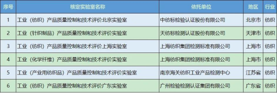 工業(yè)產(chǎn)品質(zhì)量控制和技術評價實驗室通過評估復核名單(紡織行業(yè))