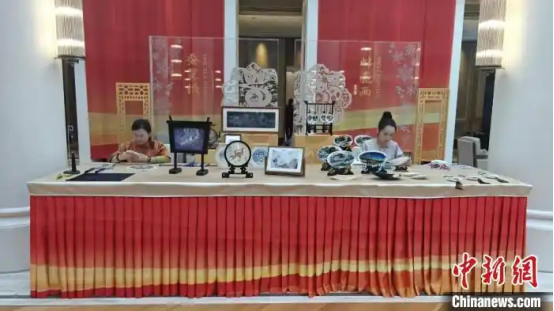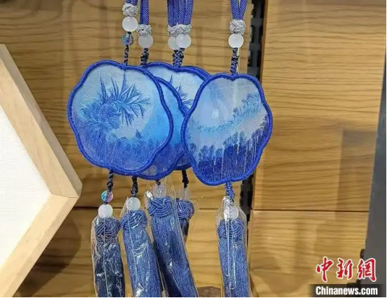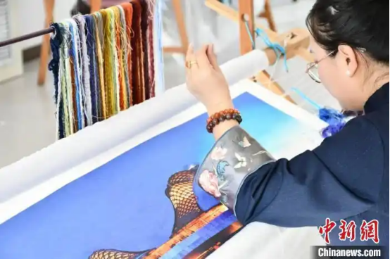工作人員現(xiàn)場(chǎng)展示非遺技藝蠶翼繡