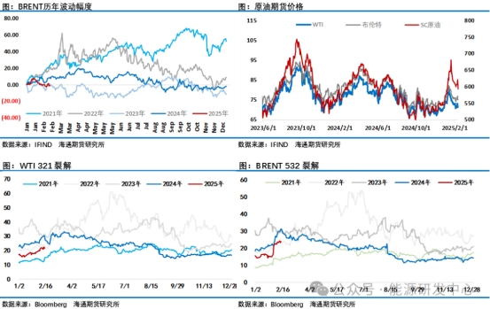 近期原油市場(chǎng)的注意力集中在圍繞俄烏沖突的進(jìn)展,美國(guó)、歐洲、烏克蘭及俄羅斯等各方利益博弈下,和平協(xié)議最終如何落地是接下來(lái)市場(chǎng)關(guān)注的焦點(diǎn)。對(duì)于油價(jià)的預(yù)期目前非常明顯是預(yù)期先行,那就是隨著俄烏停戰(zhàn),制裁取消,隨著地緣風(fēng)險(xiǎn)降溫我,油價(jià)逐步走低,但在這個(gè)過(guò)程各方博弈下會(huì)給油價(jià)運(yùn)行帶來(lái)反復(fù)。油價(jià)下檔區(qū)間低位的支持目前仍在,市場(chǎng)也沒有形成在一季度破位下行的一致性預(yù)期,因此還是建議維持區(qū)間內(nèi)偏弱的高波動(dòng)運(yùn)行思路,注意節(jié)奏把握。
