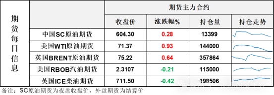 【1】因美國總統(tǒng)日假期,WTI提前收盤,主力原油期貨收漲0.66美元,漲幅0.93%,報71.37美元/桶;布倫特主力原油期貨收漲0.48美元,漲幅0.64%,報75.22美元/桶;INE原油期貨收漲0.28%,報604.3元。