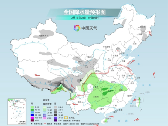 今后三天(2月18日至20日),南方將維持多陰雨的天氣格局,北方今夜起降水也將發(fā)展增多,西北地區(qū)東部至黃淮將自西向東出現(xiàn)雨雪天氣。本周影響我國(guó)的冷空氣活躍,全國(guó)大部氣溫將在波動(dòng)中下滑,并陸續(xù)轉(zhuǎn)為較常年同期偏低的狀態(tài)。