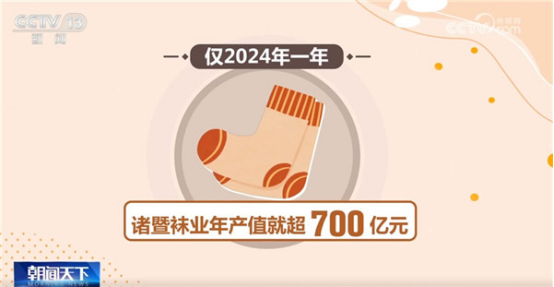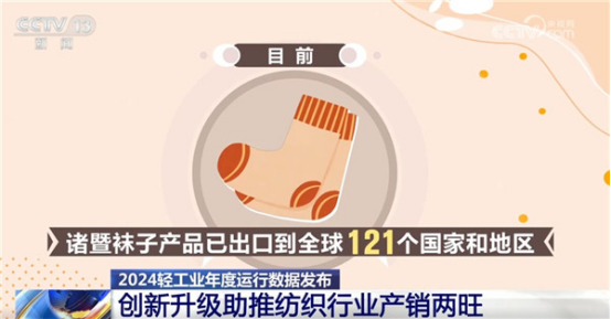 當(dāng)?shù)卦谛略O(shè)備、新材料、新工藝上不斷創(chuàng)新,為襪品功能、穿戴場景等多元化提供了更多選擇。目前,產(chǎn)品已出口到全球121個國家和地區(qū),僅2024年一年,襪業(yè)年產(chǎn)值就超700億元。