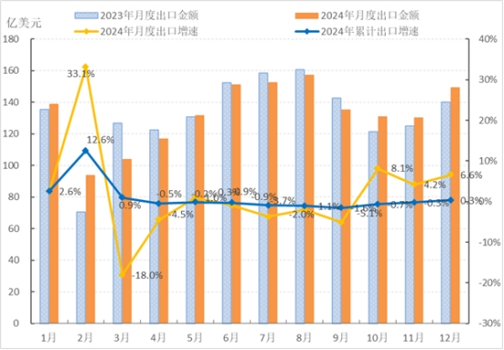 圖3 2024年1-12月我國(guó)服裝及衣著附件出口情況