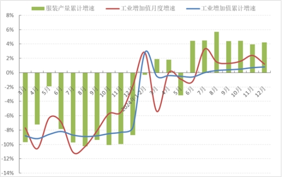 圖1 2024年1-12月服裝行業(yè)生產(chǎn)增速情況