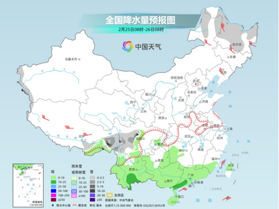 今明天(2月25日至26日),南方仍有較大范圍降水。華南部分地區(qū)將現(xiàn)中雨,有利于緩和當(dāng)?shù)貧庀蟾珊担瑫r西藏等地部分地區(qū)還會有雨雪天氣。后天,南方大部降水將短暫停歇。隨著冷空氣退卻,南北方陸續(xù)開啟大回暖,黃淮及其以南不少地方本月底最高氣溫將超20℃,江南多地有望入春。