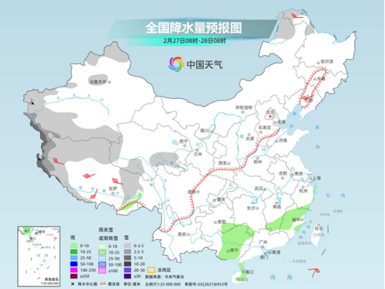 今明天,南方仍有較大范圍降水,同時西藏等地部分地區(qū)還會有雨雪天氣。后天,南方大部降水將短暫停歇。