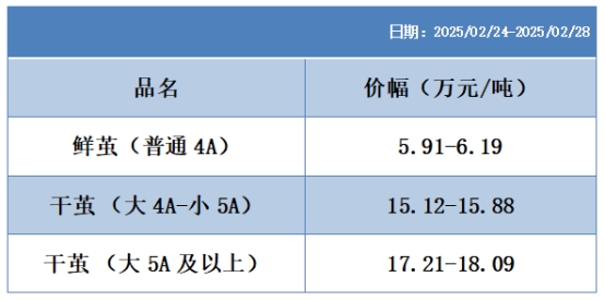 根據本周蠶繭報價按照指數(shù)方案形成的基準品價格區(qū)間