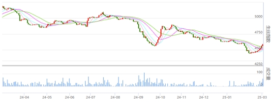 今日(周一)生絲盤面各遠(yuǎn)近合約價格多數(shù)繼續(xù)有所收漲,生絲電子指數(shù)繼續(xù)收漲。其中,250325合約今日進入交收月,減倉明顯,收出帶上影的小陽線;250925和260325合約則有所收跌,倉量略有增加,收出帶有上下影線的小陰線。