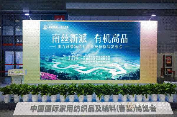 由廣西河池宜州區(qū)人民政府主辦的,廣西嘉聯(lián)和廣西南方絲巣共同承辦的“南絲新派 有機(jī)高品”南方絲巢綠色有機(jī)桑蠶絲新品發(fā)布會(huì)于今日(3月12日)在上海國(guó)家會(huì)展中心舉行的中國(guó)國(guó)際家用紡織品及輔料(春夏)博覽會(huì)上召開(kāi)。