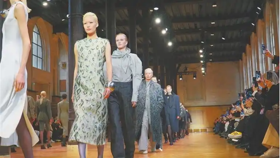 巴黎時裝周維羅妮克·勒魯瓦2025/26秋冬黎錦大師合作系列走秀現(xiàn)場,模特身著黎錦元素服飾