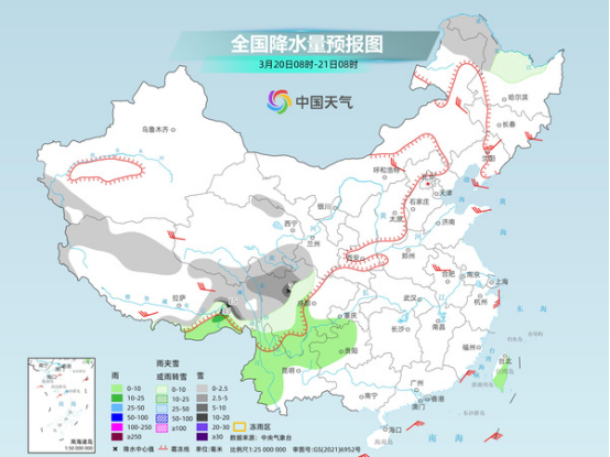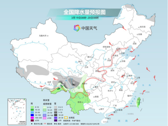 我國大部晴朗升溫、降水稀少,但在西南地區(qū)雨雪天氣比較頻繁。未來三天,西藏東部、川西高原等地部分地區(qū)有小到中雪,局地大到暴雪。同時,內(nèi)蒙古東北部、黑龍江北部也將有小到中雨雪天氣。