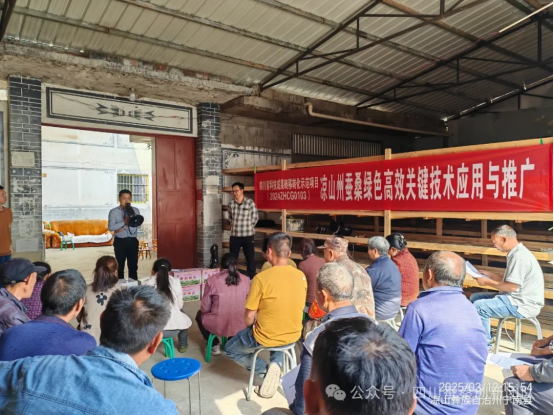 培訓(xùn)會(huì)上,州農(nóng)科院蠶煙所所長、高級(jí)農(nóng)藝師趙亮主持會(huì)議并致辭。黃蓋群圍繞四川蠶桑產(chǎn)業(yè)發(fā)展現(xiàn)狀、政策支持、存在問題及發(fā)展優(yōu)勢(shì)等方面進(jìn)行了深入淺出的講解,并聚焦涼山州蠶桑春季管理技術(shù)要點(diǎn),系統(tǒng)開展了專題培訓(xùn):桑園春管方面:從廢棄桑枝處理、主要病蟲害防控、桑園土壤肥培及糧桑復(fù)合種植模式集成等方面,詳細(xì)講解了技術(shù)要點(diǎn)和操作規(guī)范,助力桑園提質(zhì)增效。桑樹樹型養(yǎng)成方面:重點(diǎn)強(qiáng)調(diào)了及時(shí)疏芽、合理留條和外展中空等技術(shù)要點(diǎn),為桑樹優(yōu)質(zhì)高產(chǎn)打下堅(jiān)實(shí)基礎(chǔ)。家蠶健康養(yǎng)殖方面:系統(tǒng)講解了飼蠶環(huán)境病原檢測(cè)、清洗消殺、蠶體消毒和良桑飽食等技術(shù)要點(diǎn),保障家蠶健康成長,提升蠶繭質(zhì)量。培訓(xùn)期間,還向參會(huì)群眾發(fā)放了白毒滅、消毒王、滅蠅片等飼蠶消毒物資30余套,以及《春季桑園管理技術(shù)要點(diǎn)》《飼蠶環(huán)境樣品采集技術(shù)規(guī)程》等技術(shù)資料70余份,切實(shí)將科技服務(wù)送到生產(chǎn)一線。