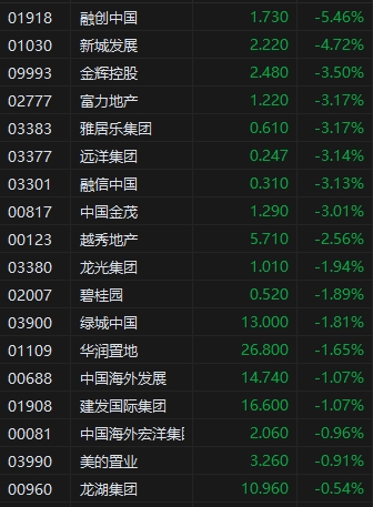 3月19日消息,港股三大指數(shù)漲跌不一,截至收盤,恒生指數(shù)(24771.139, 30.57, 0.12%)漲0.12%,報24771.14點,恒生科技指數(shù)(6041.19, -64.31, -1.05%)跌1.05%,國企指數(shù)跌0.15%。盤面上,科網(wǎng)股漲跌不一,百度集團跌近4%,嗶哩嗶哩跌超2%,阿里巴巴跌超1%,小米集團漲近1%;內(nèi)房股普遍下跌,融創(chuàng)中國(1.73, -0.10, -5.46%)跌超6%;黃金股繼續(xù)活躍,招金礦業(yè)(16.5, 0.50, 3.13%)漲超3%。