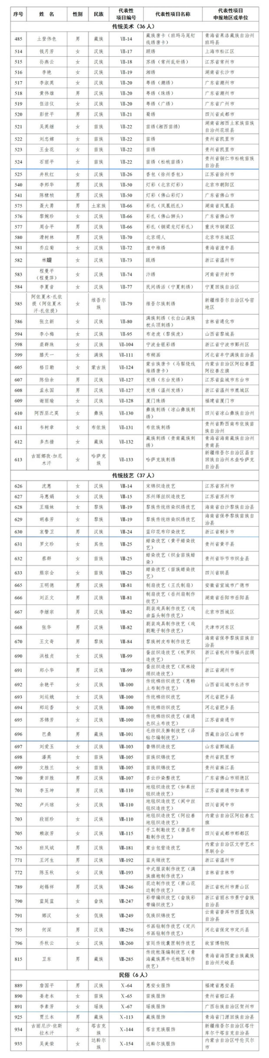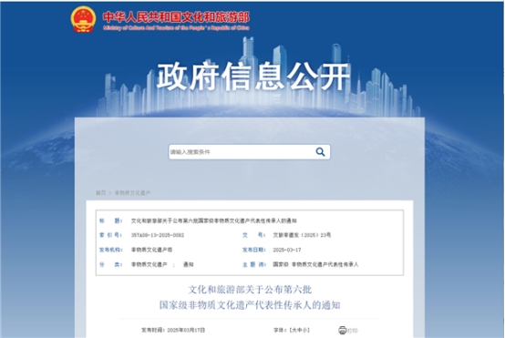 據(jù)了解,近年來,各地高度重視非物質(zhì)文化遺產(chǎn)代表性傳承人隊伍建設(shè),涌現(xiàn)出一大批德藝雙馨、技藝精湛,在非物質(zhì)文化遺產(chǎn)保護傳承中發(fā)揮重要作用的典型代表。為加強非物質(zhì)文化遺產(chǎn)傳承人隊伍建設(shè),進一步提升非物質(zhì)文化遺產(chǎn)系統(tǒng)性保護能力水平,保護和傳承好非物質(zhì)文化遺產(chǎn),文化和旅游部組織開展第六批國家級非物質(zhì)文化遺產(chǎn)代表性傳承人認(rèn)定工作。經(jīng)推薦申報、材料復(fù)核、專家初評、社會公示、評審委員會審議等程序,確定了第六批國家級非物質(zhì)文化遺產(chǎn)代表性傳承人名單。