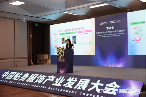 抖音電商綜合業(yè)務內衣褲襪行業(yè)負責人李雅雯在大會上分享了2025抖音內衣趨勢,表示汕頭內衣產業(yè)帶高速增長,2024年抖音電商內衣褲襪類目汕頭產業(yè)帶過億品牌約20個,同比增長85%,指出線上生意靠內容電商驅動。