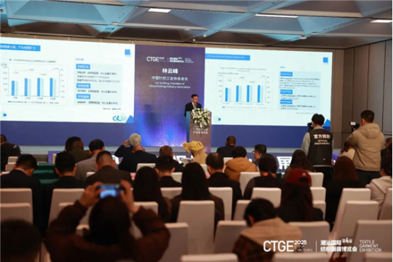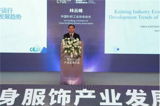 中國針織工業(yè)協(xié)會林云峰會長作針織行業(yè)經濟及貼身服飾產業(yè)發(fā)展趨勢報告,他表示,針織行業(yè)整體營收穩(wěn)健上揚,利潤提速增長,貼身服飾行業(yè)規(guī)模持續(xù)擴大。同時提出生物基紡織新材料、智能可穿戴將成為新的發(fā)展趨勢。