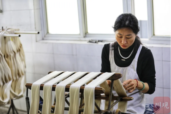 蠶桑是寧南的第一支柱產業(yè),寧南縣南絲路集團有限公司是引領寧南蠶桑產業(yè)發(fā)展的龍頭企業(yè)。在寧南銀鴻絲業(yè)有限公司的廠房,工人們正在生產線上熟練地煮繭、取絲、繅絲。記者來到全國勞模示范車臺,公司工會副主席晏魯作正在這里進行新員工培訓和技術指導,其獨創(chuàng)的“晏式手法”極大地提高了繅絲生產效率,在她的指導下,新工人迅速掌握技術要點,通過示范車臺的帶動,公司整體生產效率提升30%以上。銀鴻絲業(yè)副總經(jīng)理劉兢介紹,2024年,公司銷售收入首次突破6億元大關,今年還將爭取在外貿出口上再突破。