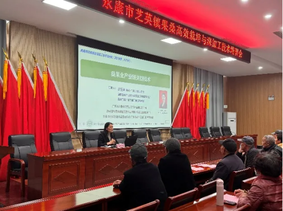 徐玉娟一行前往永康市、武義縣開(kāi)展蠶桑產(chǎn)業(yè)考察調(diào)研與技術(shù)指導(dǎo)服務(wù),組織了現(xiàn)場(chǎng)研討會(huì)及永康示范縣果桑高效栽培與深加工技術(shù)培訓(xùn)會(huì),并做了《桑果全產(chǎn)業(yè)鏈關(guān)鍵技術(shù)》專題培訓(xùn),詳細(xì)介紹了桑果營(yíng)養(yǎng)功能價(jià)值及由桑果精深加工產(chǎn)業(yè)趨勢(shì)及健康食品開(kāi)發(fā)情況,團(tuán)隊(duì)聚焦品種創(chuàng)制、技術(shù)突破、產(chǎn)品創(chuàng)制、工程化應(yīng)用等方面構(gòu)建的桑果全產(chǎn)業(yè)鏈技術(shù)體系及產(chǎn)業(yè)化系列成果。