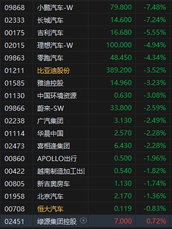 3月25日消息,港股三大指數(shù)集體收跌,截至收盤,恒生指數(shù)(23344.25, -561.31, -2.35%)跌2.35%,報23344.25點(diǎn),恒生科技指數(shù)(5517.52, -219.31, -3.82%)跌3.82%,國企指數(shù)跌2.65%。盤面上,科網(wǎng)股全線下跌,小米集團(tuán)跌超6%,嗶哩嗶哩、美團(tuán)跌超4%,京東集團(tuán)、阿里巴巴、快手跌超3%,騰訊控股(502, -11.00, -2.14%)跌超2%;汽車股普遍下跌,小鵬汽車跌超7%;航空股沖高回落,中國東方航空股份(2.7, 0.10, 3.85%)漲超3%。