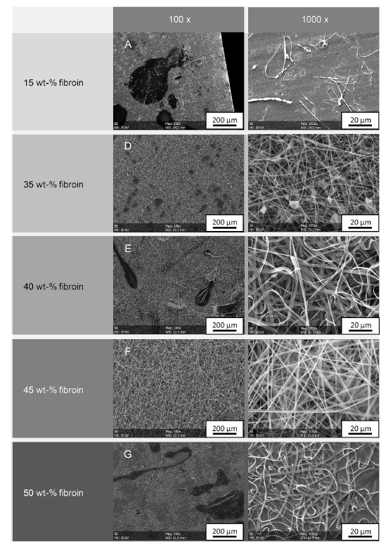 圖1 由不同濃度的純絲素溶液在22℃和30 RH下制成的非織造布