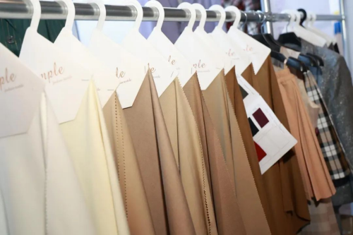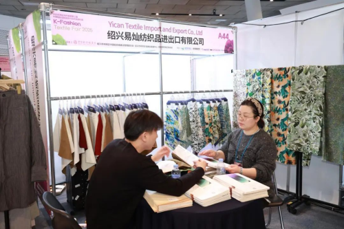 展品方面,從功能上看,既有時尚親膚、舒適透氣、抗菌防螨等特色功能面料,又有追求極致柔軟觸感、絢麗色彩表現(xiàn)的時尚面料;從材質(zhì)角度,天然纖維如棉、麻、絲、毛,與化學(xué)纖維如聚酯纖維、錦綸、氨綸等材質(zhì)相互輝映。以絲、麻、棉、毛交織染色及后整工藝為主營產(chǎn)業(yè)鏈服務(wù)的易燦紡織產(chǎn)業(yè)集團有限公司為本屆展會帶來了品類豐富的新品面料,除主打優(yōu)質(zhì)純棉系列和創(chuàng)新科技賦能的銅竹纖維系列之外,還呈現(xiàn)了繽紛的染色和獨特的印花,成為展會一道亮麗的風(fēng)景;紹興超拓紡織有限公司帶來的特色全滌梭織、染色印花底布、各類數(shù)碼印以及天絲、亞麻、錦天絲提花新品吸引了韓國本地經(jīng)銷商的目光;專注于職業(yè)裝、校服面料品類的浙江騰俠紡織,以高品質(zhì)羊毛混紡面料保持穩(wěn)定的出口訂單量,一系列產(chǎn)品通過展會窗口對接更多韓方服裝品牌和時尚設(shè)計師資源;紹興紫彩紡織品有限公司攜“小香風(fēng)”面料首次亮相展會,以優(yōu)雅精致的奢華質(zhì)感和獨特的圖案提花俘獲了眾多韓國服裝品牌的設(shè)計總監(jiān)和買手。