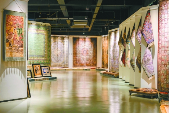 在閬中絲毯文化創(chuàng)意產(chǎn)業(yè)園,陳列著用絲毯編織技藝創(chuàng)作的精美絲毯