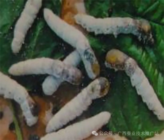 2.細(xì)菌性敗血病是細(xì)菌病原浸染家蠶血淋巴引起的病害,有黑胸?cái)⊙ ㈧`菌敗血病和青頭敗血病,病原包括大桿菌、小桿菌、鏈球菌和葡萄球菌等,主要以創(chuàng)傷傳染方式感染家蠶。