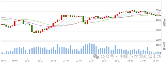 今日(周一),生絲盤面各遠(yuǎn)近生絲合約價格波動延續(xù)平穩(wěn)態(tài)勢,市場正向新繭季逐步深入發(fā)展。