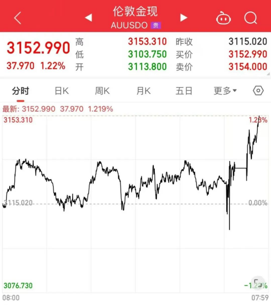 避險(xiǎn)資產(chǎn)上漲,紐約期金首次觸及3200美元/盎司,日內(nèi)漲1.73%?,F(xiàn)貨黃金創(chuàng)歷史新高,突破3150美元/盎司。