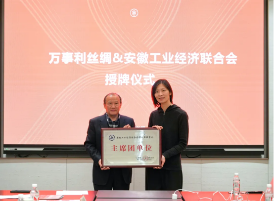 座談中,大家認(rèn)真聽取了萬事利基本情況和文化、品牌、科技、模式四個方面的創(chuàng)新經(jīng)驗(yàn)介紹,真誠感謝企業(yè)的精心安排與接待,暢談了學(xué)習(xí)調(diào)研的收獲和體會。張德山會長在座談中重點(diǎn)介紹了安徽工經(jīng)聯(lián)的發(fā)展歷程和工作開展情況,以及與萬事利的相識相親和真誠合作。鼓勵萬事利為我國絲綢文化的傳承創(chuàng)新注入新的動力,不斷引領(lǐng)我國絲綢行業(yè)實(shí)現(xiàn)高質(zhì)量綠色發(fā)展。并表示今后將以此次活動為新的起點(diǎn),進(jìn)一步加強(qiáng)會企合作,支持萬事利在安徽的事業(yè)發(fā)展。最后,將“安徽工業(yè)經(jīng)濟(jì)聯(lián)合會主席團(tuán)單位”的匾牌授予萬事利領(lǐng)導(dǎo)。