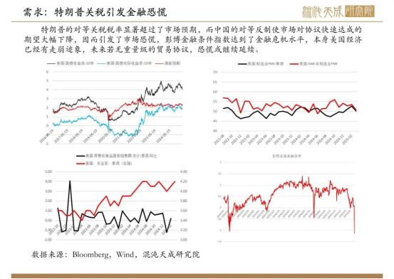 油價(jià)在增產(chǎn)超預(yù)期和關(guān)稅打壓全球經(jīng)濟(jì)都大幅加強(qiáng)的局面下突破下行,我們認(rèn)為全面的貿(mào)易協(xié)議很難快速達(dá)成,關(guān)稅對(duì)全球經(jīng)濟(jì)的利空影響將繼續(xù)發(fā)酵甚至有演變成經(jīng)濟(jì)危機(jī)的可能,因此油價(jià)繼續(xù)看跌。