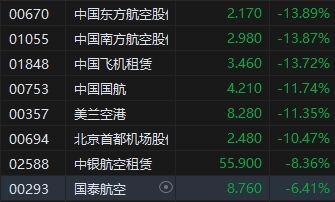 航空股全線走低,中國東方航空股份跌近14%。招商證券(11.02, -2.48, -18.37%)指出,貿(mào)易摩擦對航空影響維度較多,受宏觀經(jīng)濟(jì)及國際經(jīng)貿(mào)往來傳導(dǎo),若無進(jìn)一步需求提振政策對沖,民航需求端可能受到不利影響沖擊。
