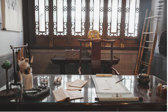圖:捐贈錦盒置于蘭蘇園東北角書房