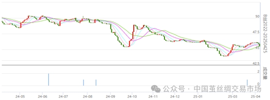 今日(周二)生絲盤(pán)面各遠(yuǎn)近合約漲跌不一。主力 250925 合約在 45 萬(wàn)價(jià)位附近有所止跌展開(kāi)反彈,最終以小陽(yáng)線報(bào)收。而其他合約較 250925 合約價(jià)格更高,在今日交易中,有不同程度下挫。使得盤(pán)面整體多空博弈較為明顯。