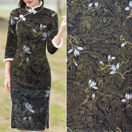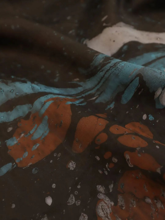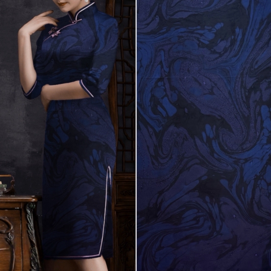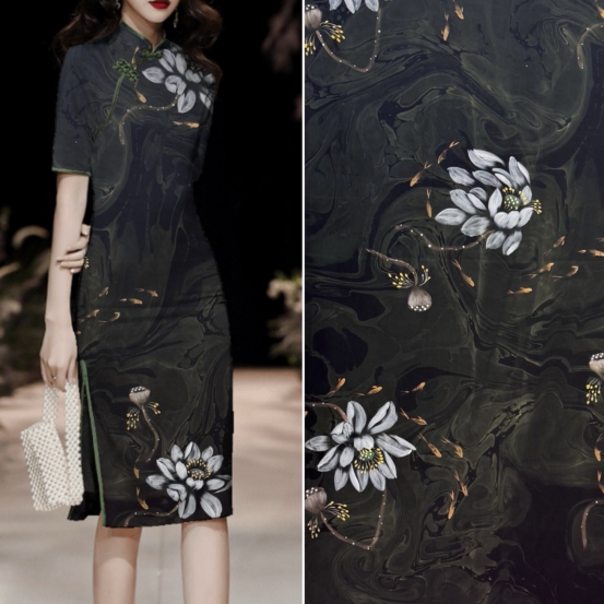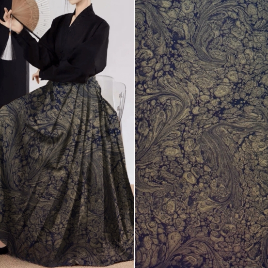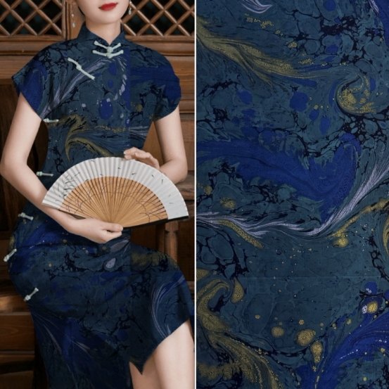 如今,我們將這古老的墨池技藝創(chuàng)新性地融入同為非物質(zhì)文化遺產(chǎn)的香云紗面料制作中。當(dāng)兩種非遺文化激情碰撞,誕生的不僅是一款面料,更是藝術(shù)領(lǐng)域的巔峰之作。墨池古法采用天然礦物質(zhì)染料與植物染料,在水的調(diào)和下,與香云紗完美相融,繪就出一幅幅仿若 “天人合一” 的藝術(shù)畫(huà)作面料,每一寸都流淌著自然與傳統(tǒng)交織的魅力。