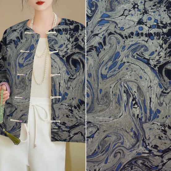 每一塊墨池香云紗都是獨(dú)一無(wú)二的存在。它的紋理隨機(jī)形成,恰似天然大理石般渾然天成,不可復(fù)制。天然原料搭配全手工制作,使其稀缺珍貴,在品味獨(dú)特與高雅之余,更是能深切感受傳統(tǒng)非遺的獨(dú)特魅力,體會(huì)其蘊(yùn)含的深厚人文價(jià)值。
