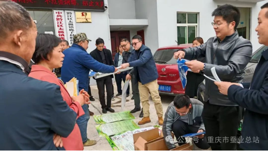 2025年4月3日,正值春蠶生產(chǎn)序幕陸續(xù)展開(kāi)之際,市人社局第六批專家服務(wù)團(tuán)郭明武研究員團(tuán)隊(duì)成員重慶市蠶業(yè)總站副站長(zhǎng)余華獻(xiàn)高級(jí)農(nóng)藝師、胡文龍正高級(jí)農(nóng)藝師、郭銘建高級(jí)農(nóng)藝師、傅宇航技術(shù)員,黔江區(qū)蠶業(yè)總站曾玉龍工程師,黔江區(qū)太極鎮(zhèn)蠶繭站站長(zhǎng)王于春等一行6人赴黔江區(qū)太極鎮(zhèn)鹿子村開(kāi)展蠶桑技術(shù)服務(wù)。