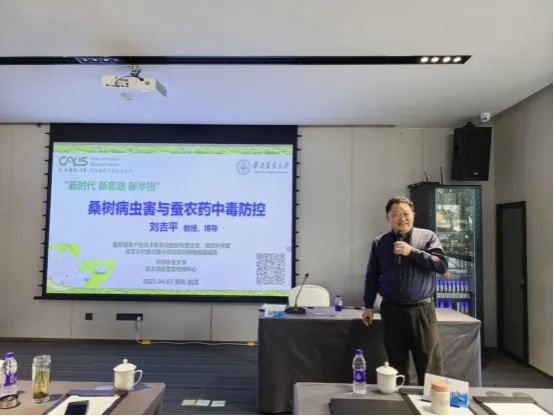 培訓(xùn)邀請(qǐng)國(guó)家蠶桑產(chǎn)業(yè)技術(shù)體系崗位科學(xué)家鄒宇曉研究員、劉吉平教授授課,浙江大學(xué)邵勇奇研究員,浙江省農(nóng)科院蠶茶所所長(zhǎng)王永強(qiáng)研究員、呂志強(qiáng)研究員等到會(huì)指導(dǎo)。鄒宇曉以桑樹生態(tài)利用與蠶桑資源綜合開發(fā)為主題,從理論基礎(chǔ)、研究思路、開發(fā)實(shí)例等方面展開,為蠶桑資源高值化利用開拓思路和視野。劉吉平則以桑樹病蟲害與蠶農(nóng)藥中毒防控為題,將理論研究與生產(chǎn)實(shí)踐相結(jié)合,系統(tǒng)介紹了桑園的病蟲害及其防治技術(shù),農(nóng)藥的使用與殘留,為蠶農(nóng)藥中毒提出科學(xué)防控建議。