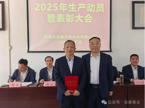 2025年4月7日,陜西省安康市蠶種場有限公司召開2025年生產(chǎn)動員暨表彰大會,會議由公司黨委副書記、總經(jīng)理王慶國主持,公司黨委書記、董事長張保華和領(lǐng)導(dǎo)班子成員出席會議。
