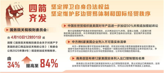 4月9日晚間,國(guó)務(wù)院關(guān)稅稅則委員會(huì)公告,自4月10日12時(shí)01分起,調(diào)整原產(chǎn)于美國(guó)的進(jìn)口商品加征關(guān)稅稅率,由此前的34%進(jìn)一步提高至84%。