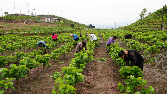 4月8日,在宜賓高縣來復(fù)鎮(zhèn)響石村標(biāo)準(zhǔn)化桑園基地,蠶農(nóng)楊元友等人在農(nóng)技專家指導(dǎo)下管理桑樹,為桑葉豐產(chǎn)、蠶繭豐收打牢基礎(chǔ)。