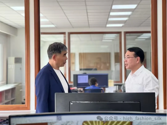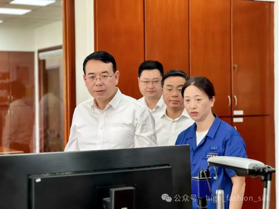 趙常委深入達(dá)利絲綢研發(fā)中心、數(shù)智生產(chǎn)車間,詳細(xì)了解絲綢文化傳承、智能化生產(chǎn)及人工智能服飾設(shè)計(jì)應(yīng)用,現(xiàn)場(chǎng)體驗(yàn)數(shù)字化創(chuàng)新場(chǎng)景。他與中國(guó)絲綢協(xié)會(huì)特邀副會(huì)長(zhǎng)、公司董事長(zhǎng)林平交流并強(qiáng)調(diào),要深學(xué)踐行習(xí)近平文化思想,統(tǒng)籌推進(jìn)“文化+科技”融合,以創(chuàng)意設(shè)計(jì)和科技研發(fā)賦能歷史經(jīng)典產(chǎn)業(yè)。