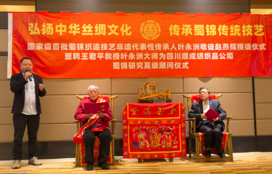 同時(shí),四川順成紡織品有限公司在拜師儀式上正式聘任葉永洲大師、王君平教授為高級(jí)顧問(wèn)。王君平教授強(qiáng)調(diào),蜀錦作為中國(guó)名錦之首,需在保護(hù)中探索產(chǎn)業(yè)化路徑。順成公司憑借多年行業(yè)積淀,已實(shí)現(xiàn)桑蠶養(yǎng)殖、織造、文產(chǎn)全鏈條布局,未來(lái)將通過(guò)蜀錦蜀繪,加上蜀繡與蜀纈組合成為川蜀絲綢的“四朵金花”布局文化矩陣,打造川蜀絲綢新名片?;顒?dòng)不僅為非遺傳承注入新生力量,也為傳統(tǒng)工藝與現(xiàn)代經(jīng)濟(jì)融合提供范本。