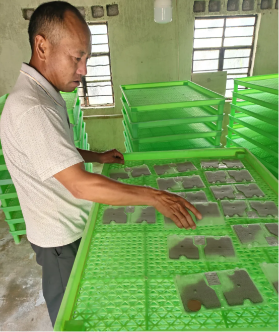 自開春以來(lái),縣茶特發(fā)展中心組織技術(shù)員分赴田間,開展桑園病蟲害防治、蠶房消毒等專題培訓(xùn)3次,覆蓋500余戶農(nóng)戶。而在位于聯(lián)珠鎮(zhèn)臥龍村的小蠶共育室,技術(shù)員指導(dǎo)蠶農(nóng)調(diào)控溫度、濕度、遮光進(jìn)行補(bǔ)催青,確保蠶卵孵化均勻。春蠶蠶種發(fā)放后,將組織技術(shù)人員上門服務(wù),一對(duì)一指導(dǎo)大、小蠶養(yǎng)殖。