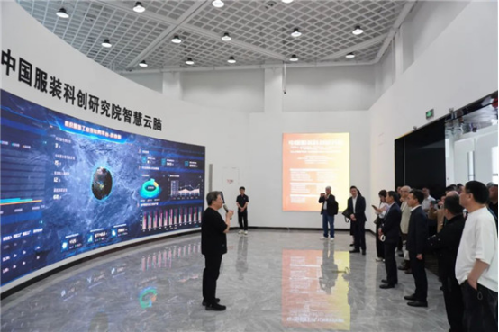 會議當天,在中國服裝協(xié)會非專職副秘書長、中國服裝科創(chuàng)研究院副院長劉正安的帶領下,與會嘉賓參觀了中國服裝科創(chuàng)研究院,通過展廳講解、場景演示,展示了中國服裝科創(chuàng)研究院在智能制造、數(shù)字化轉型等關鍵領域所取得的成果。