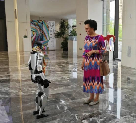 萬事利001號機(jī)器人員工小萬歡迎來訪大使